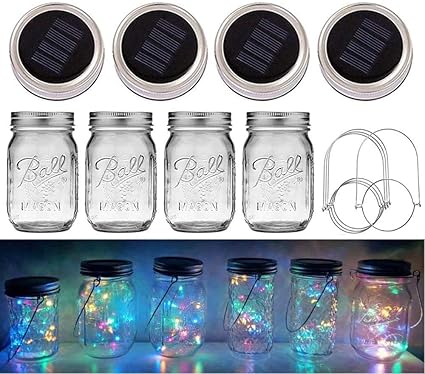 Amazon Com Solar Mason Jar Lights 4 Pack 20 Led Waterproof Fairy Firefly Jar Lids String Lights With Jars And Hangers Patio Yard Garden Wedding Easter Decoration Multicolor Home Improvement
