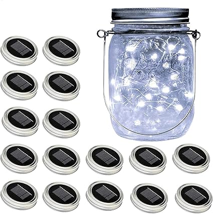 Amazon Com Solar Mason Jar Lid Lights 16 Pack 30 Led Fairy Star Firefly String Lids Lights With 16 Hangers And 6 Pvc No Jars For Mason Jar Patio Garden Wedding Lantern Home Improvement