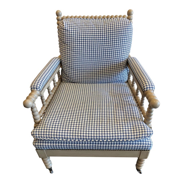New Vanguard Bell Spool Chair No 4502 Ch With Blue Houndstooth Upholstery Chairish