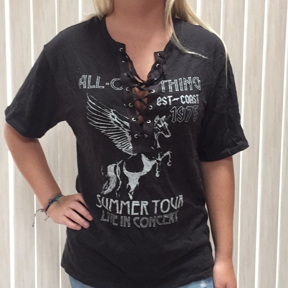 Garage Tops Lace Up Band Tee Shirt Poshmark