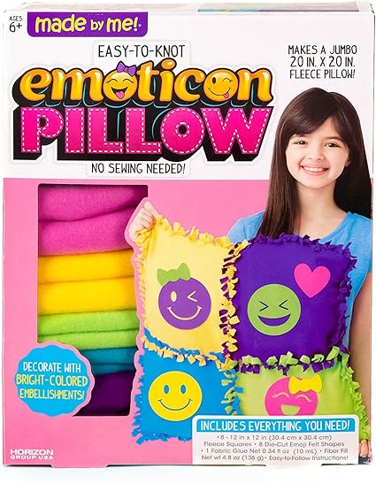 Amazon Com Made By Me Easy To Knot Jumbo Emoticon Pillow By Horizon Group Usa No Sewing No Cutting 20 In X 20 In Fleece Pillow Pre Cut Squares Felt Decals Fiber Fill Assorted