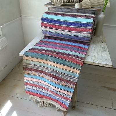 Handcrafted in India of recycled cotton each piece carries with it a variation in color and pattern unique to the artisan who. This is an unusual runner in that it is 12 long.