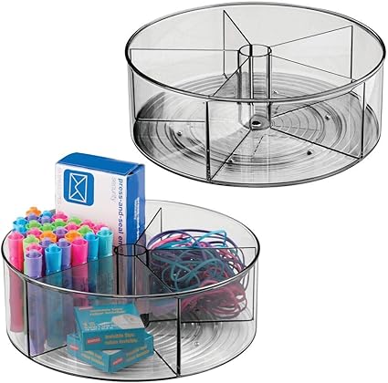 Heres an easy way to make a lazy susan for your office as they are really handy for organizing desk. See more ideas about lazy susan desk supplies diy desk. Nifty Desk and Office Organizing Carousel Modern Black Powder Coated Finish 6 Compartments with Dividers Spins 360-Degrees Lazy Susan Platform Office Desk Organizer Removable Top.