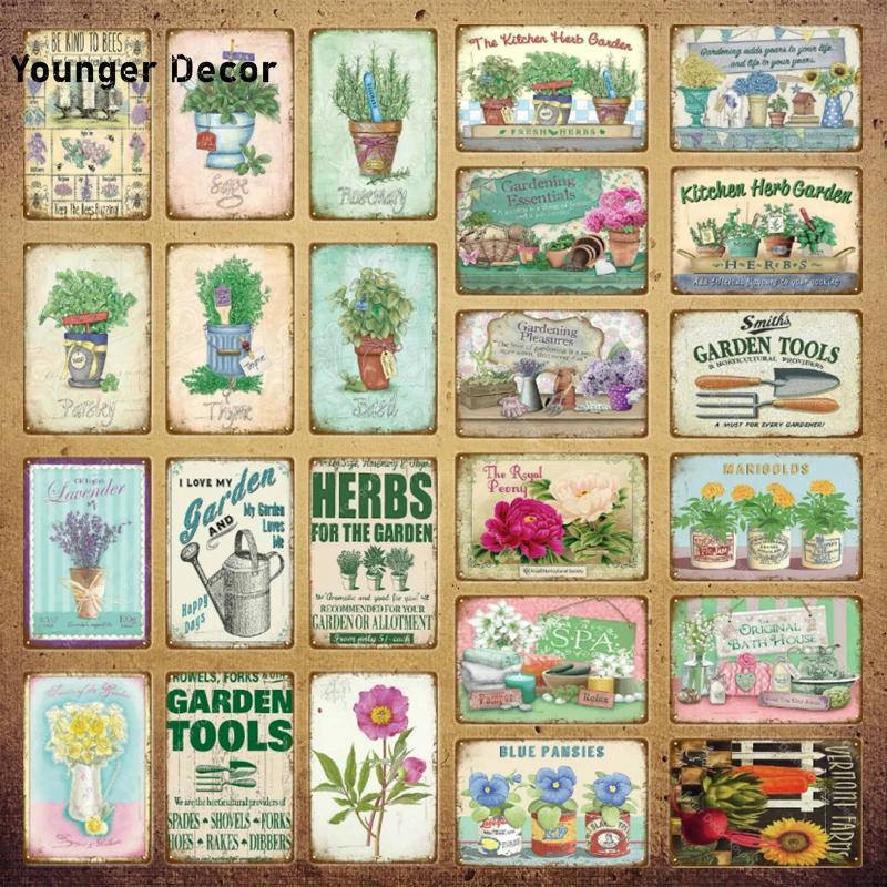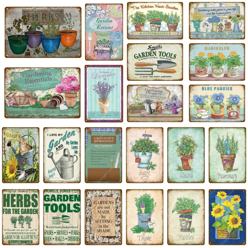 The Kitchen Herb Garden Metal Poster Vintage Tin Signs Painting Flowers Wall Art Decor Family Home Room Outdoor Decoration Yj029 Plaques Signs Aliexpress