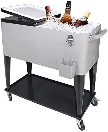 Nattork 80 Quart Rolling Cooler Cart For Outdoor Patio Deck Party Portable Party Bar Cold Drink Beverage Cart Ice Chest With Shelf Water Pipe And Bottle Opener Amazon Sg Sports Fitness Outdoors