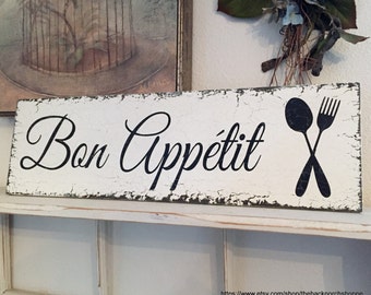 Bon Appetit French Kitchen Signs Shabby Vintage Style 14 X Etsy French Signs Wine Signs French Country Decorating